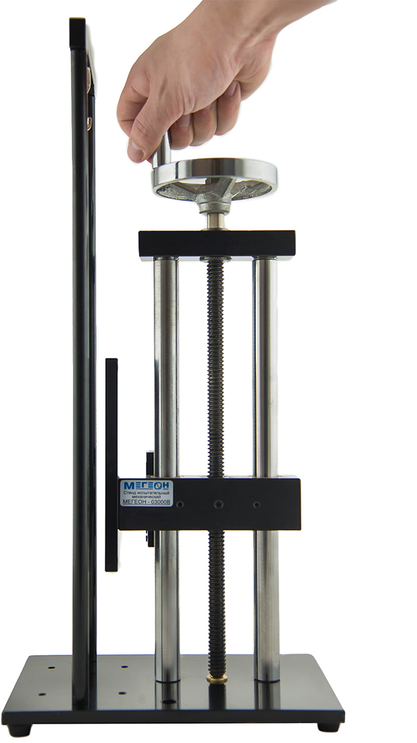 Испытательный стенд сжатия с рычажным механизмом подачи суппорта. В конструкции заложена возможность изменения высоты положения механизма подачи относительно основания. Основные узлы конструкции имеют антикоррозионное покрытие.