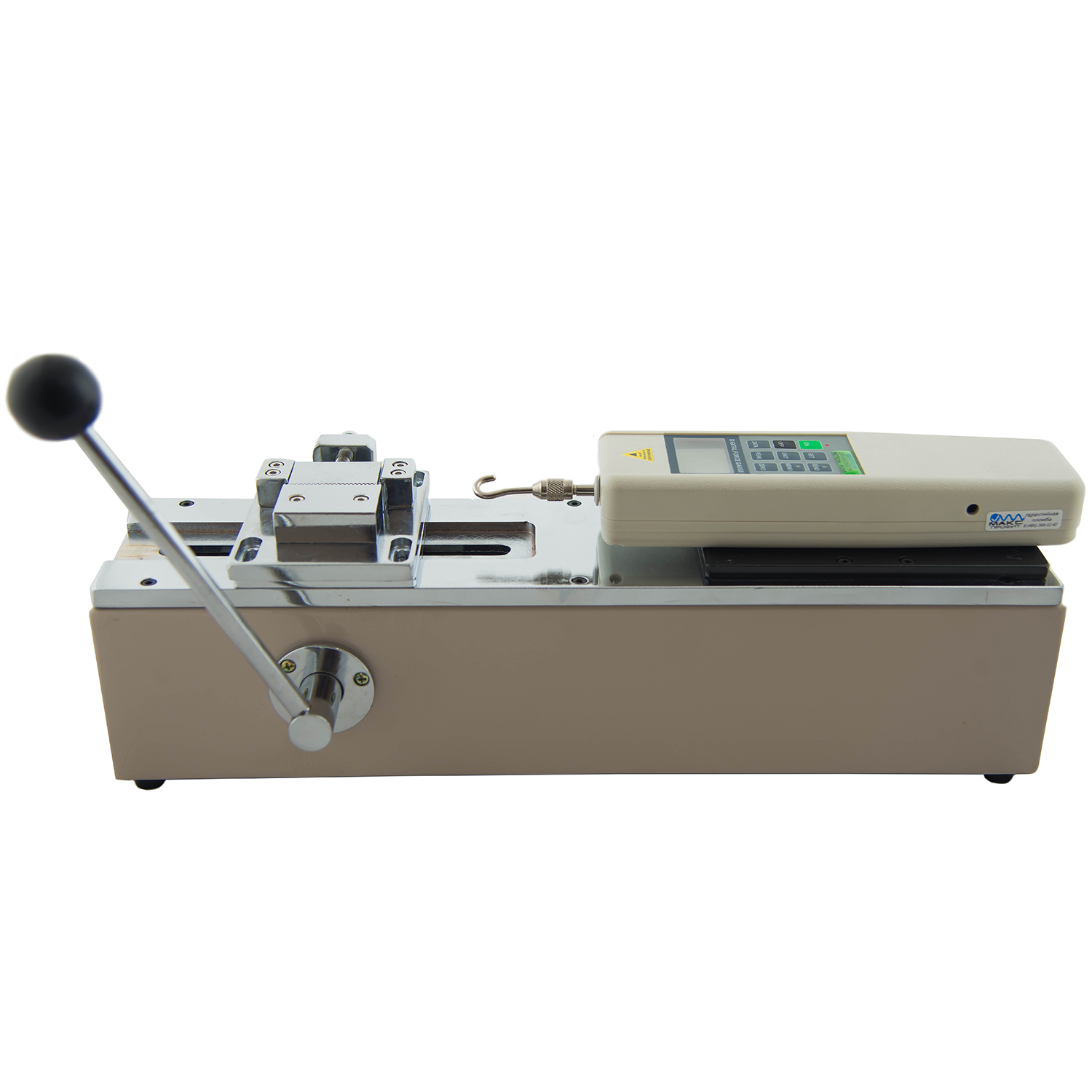 Горизонтальный испытательный стенд растяжения-сжатия с рычажным механизмом подачи суппорта. Механизм перемещения суппорта имеет простую и надёжную конструкцию, состоящую из термообработанной зубчатой рейки и шестерни. Основные узлы конструкции имеют антикоррозионное покрытие.
